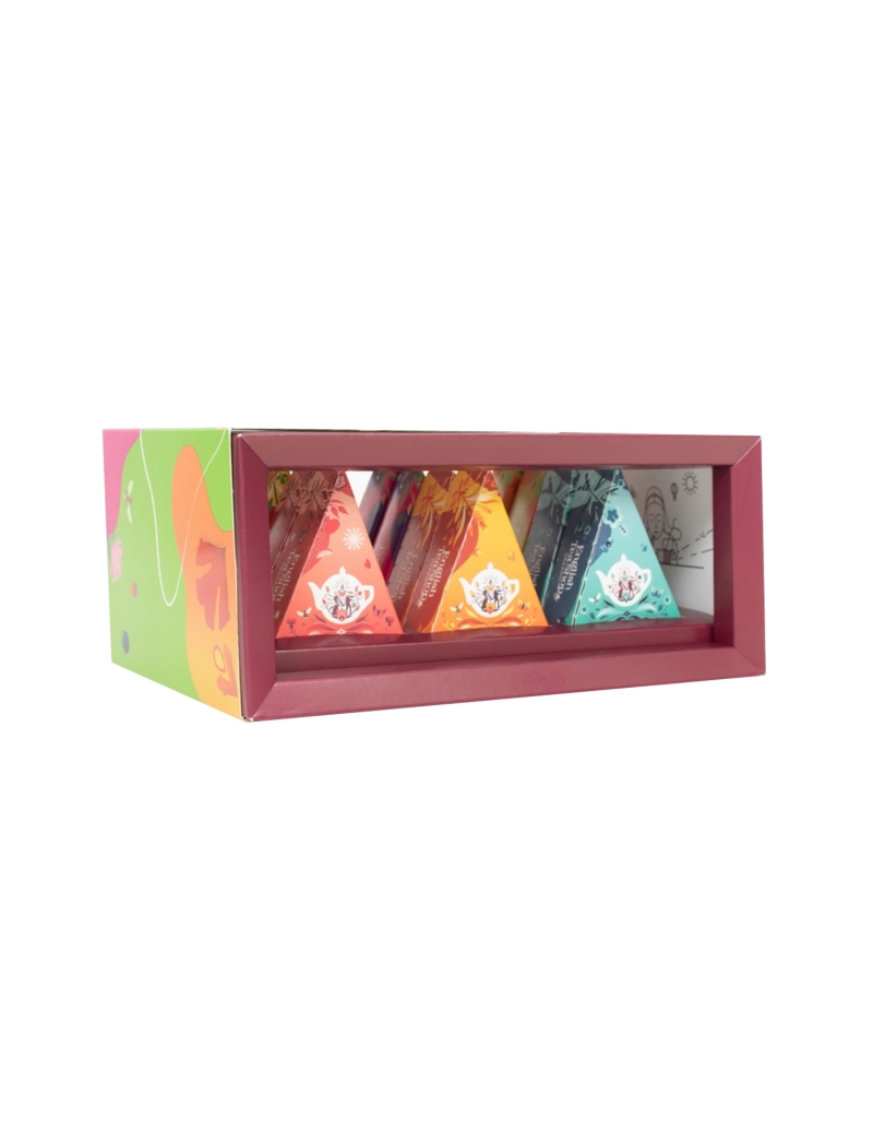 Un set di tè biologici Botanical Selection a forma di piramidi. Il tutto racchiuso in un'elegante scatola, che rende questo prodotto un regalo perfetto per ogni occasione.