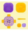Con vassoi impilabili, removibili e utilizzabili anche separatamente e 3 posate incluse.