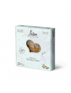 Zucchero, Pistacchio verde di Bronte* DOP (21%), Farina di Grano tenero tipo"0", Farina bianca di mais (21%), Burro (Latte), Tuorlo d'Uovo fresco da allevamento a terra in Italia, Sale.