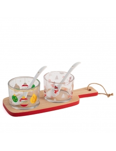 Set Aperitivo Xmas 2 Coppette Vetro con base in Bambù  Gift Box