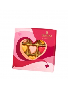 Un meraviglioso scrigno colmo di praline raffinate ricoperte di cioccolato fondente con due anime deliziose di gelatina : la vivacità della pesca...