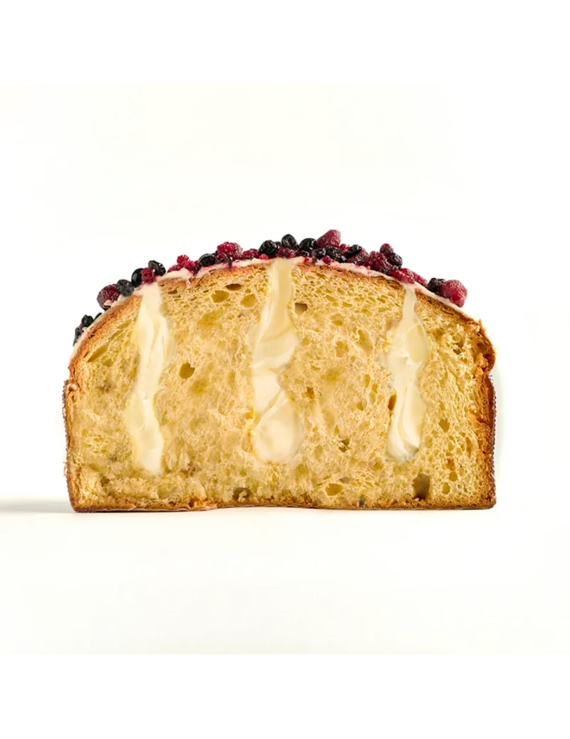 Panettone artigianale al gusto frutti di bosco Tenuta Agrilat, a tripla lievitazione naturale, con latte e burro di bufala.