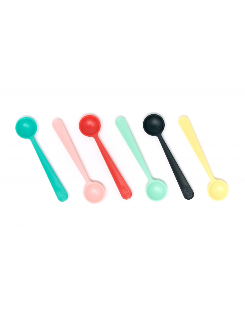I cucchiaini Quy Cup sono realizzati in R-pet, plastica riciclata per uso alimentare.