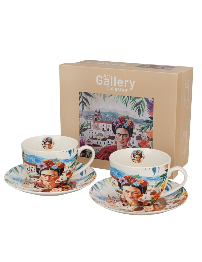Coppia Mugs con Piattino "Frida Khalo" in Gift Box