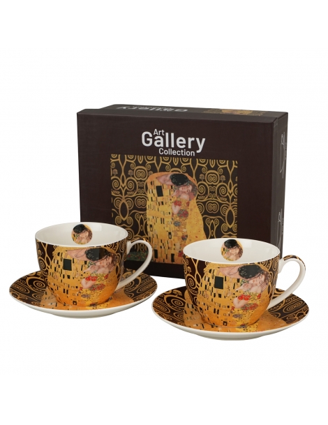 Coppia Mugs con Piattino "Il Bacio" Brown di G.Klimt in Gift Box