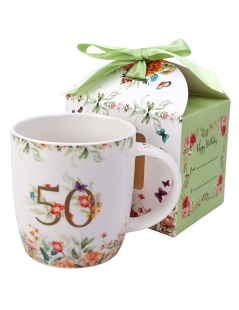 Mug Compleanno "50" in Scatola con Fiocco 400ml