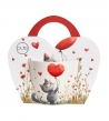 La tazza da 460 ml nel "cestello" Gatto con Palloncino, che fa parte della serie HEART, è caratterizzata da un colore bianco crema naturale con una lucentezza delicata e una resistenza e durata eccezionali, mantenendo leggerezza e finezza.